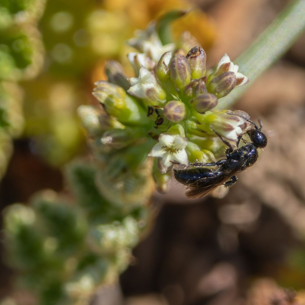 And then there are a suite of other complications, given the sometimes lengthy and complex life cycles of some invertebrates. Some are predatory or parasitic in their larval stages, but feed on nectar as adults (e.g. several wasps, Small-headed Flies), while others are herbivorous as larvae (caterpillars) but nectivorous as adults, and others are predatory through all life stages (e.g. lacewings & antlions). As larvae, solitary bees are entirely reliant on nectar and pollen, fed to them by their provisioning parents. Some are super-specialised, like the oil-collecting Rediviva species that specifically target specialised oil-producing annuals such as Hemimeris and Diascia from which they collect, with their specially-adapted, long forelegs, oil and pollen which they mix together and feed to their larvae.