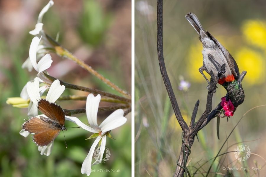 This kind of theory-testing requires a detailed understanding of the complex web of life that supports renosterveld diversity – something which in itself, we know so little about. In lieu of ten fully funded PhD projects (still a goal for the ORT!) that set out to identify the relationships between the plants and their pollinators, as well as the various life-stages of the pollinators and the plants or hosts on which they depend through these life stages, we decided to at least start attempting to observe, record and wherever possible, photograph species’ interactions: The ultimate aim being to gradually build a database of plant-pollinator interactions, that could form the basis of future studies that examine how tenuous these relationships are, and if there is anything at all that can be done to mitigate these.